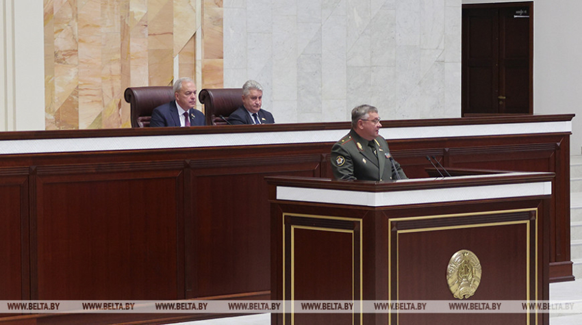16 верасня, Мінск /Кар. БЕЛТА/. Беларусь завяршае юрыдычнае афармленне зместу абноўленай ваеннай палітыкі краіны, паведаміў начальнік Генеральнага штаба Узброеных Сіл - першы намеснік міністра абароны Беларусі Павел Муравейка 16 верасня, прадстаўляючы законапраект "Аб змяненні законаў па пытаннях забеспячэння ваеннай бяспекі і абароны" на пасяджэнні трэцяй сесіі Палаты прадстаўнікоў восьмага склікання, перадае карэспандэнт БЕЛТА.