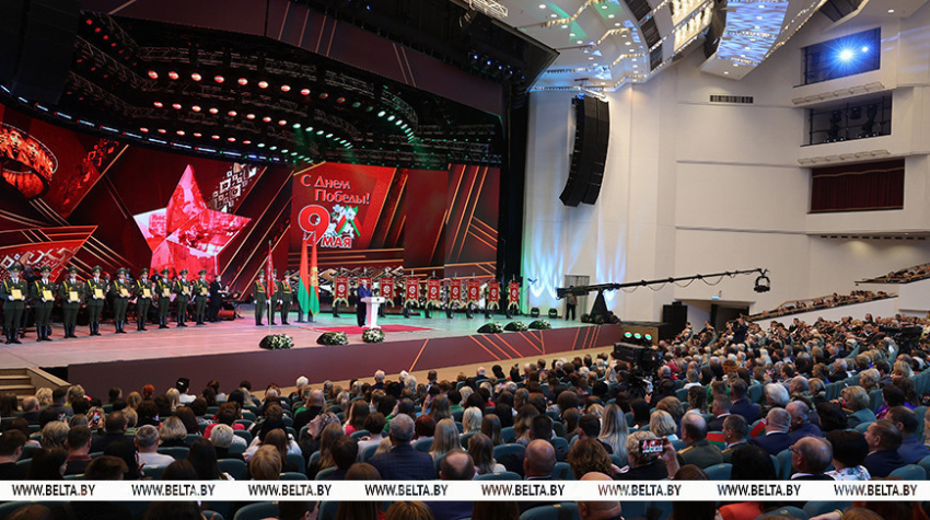 "У нашай гісторыі нямала яркіх старонак, якімі мы па праву ганарымся. Не ўсе з іх захавалі сваю значнасць да нашых дзён. Многія, страціўшы былы сэнс, аказаліся проста забыты. Аднак ёсць даты і падзеі, якія нясуць у сабе разуменне сутнасці і праўду жыцця. Яны непадуладныя часу і абставінам, перадаюцца праз пакаленні з малаком маці, аберагаюць ад памылак і дапамагаюць будаваць будучыню. Для беларусаў такой падзеяй стала Перамога савецкага народа ў Вялікай Айчыннай вайне", - падкрэсліў Аляксандр Лукашэнка.