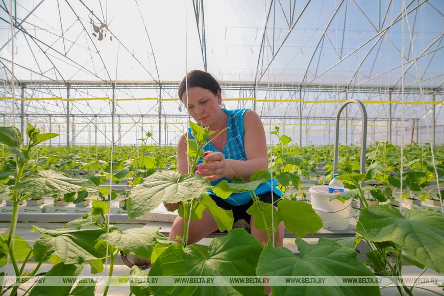 В Давид-городке Столинского района в крестьянском фермерском хозяйстве "Полесские пряности агро" созревает второй урожай огурцов в теплице, построенной в 2025 году по инновационной технологии.-0-
