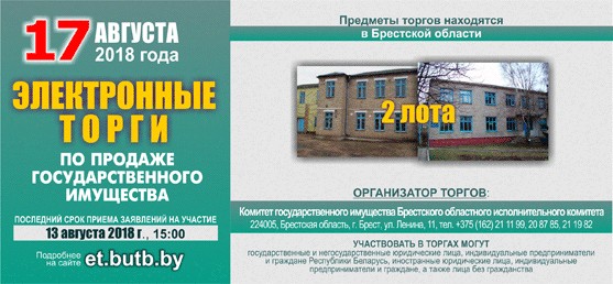 Комитет «Брестоблимущество» в июле-августе 2018 г. предлагает приобрести объекты, расположенные на территории Брестской области. На торги уже выставлено 83 объекта, из них: