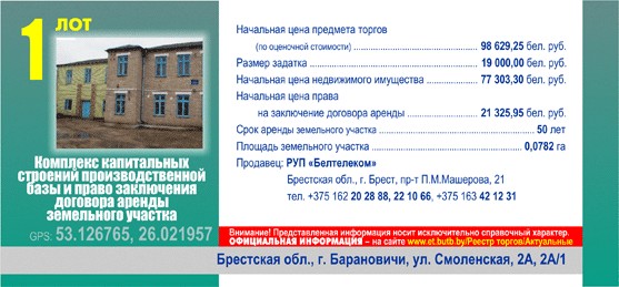 Организатор торгов - комитет «Брестоблимущество»,