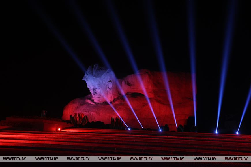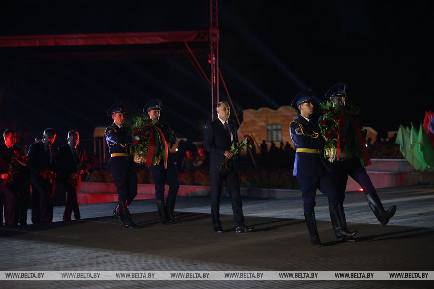 Члены дэлегацый, ганаровыя госці ўсклалі карзіны кветак да Вечнага агню і пліт некропаля. Мінутай маўчання ўдзельнікі мітынгу ўшанавалі памяць загінулых у баях воінаў. Звяртаючыся да прысутных, Аляксандр Вальфовіч адзначыў, што сёння як ніколі важна шанаваць мір на сваёй зямлі і рабіць усё магчымае для яго захавання. Дзяржаўны сакратар Саюзнай дзяржавы Дзмітрый Мезенцаў указаў на важнасць адзінства брацкіх народаў, без якога не было б і перамогі ў Вялікай Айчыннай.