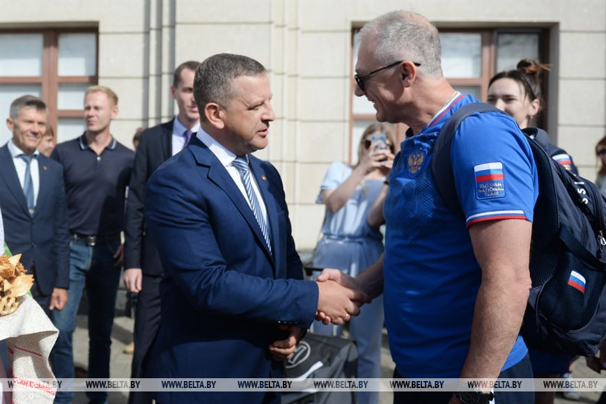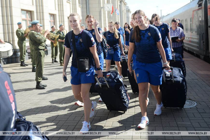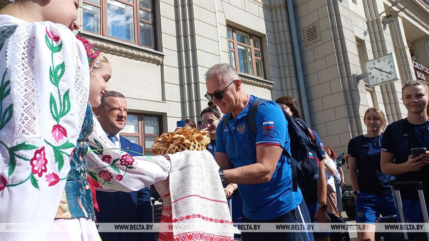 4 жніўня, Брэст /Кар. БЕЛТА/. Мужчынскую і жаночую маладзёжныя зборныя Расіі па гандболе на чыгуначным вакзале Брэст-Цэнтральны сустрэлі з караваем і пад акампанемент аркестра, перадае карэспандэнт БЕЛТА.