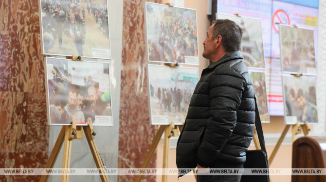 Экспазіцыя ўстаноўлена ў цэнтральнай зале чакання. Тут спецыяльна для праекта Беларускага тэлеграфнага агенцтва работнікі вакзала пераставілі лаўкі, каб наведвальнікам было зручна перамяшчацца паміж стэндамі з фатаграфіямі. Усяго прадстаўлена больш за сто здымкаў, якія адлюстроўваюць усю глыбіню, боль і трагедыю міграцыйнага крызісу, што ўзнік на беларуска-польскай граніцы.