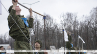 Brest paratroopers practice pull-ups to build up strength, endurance