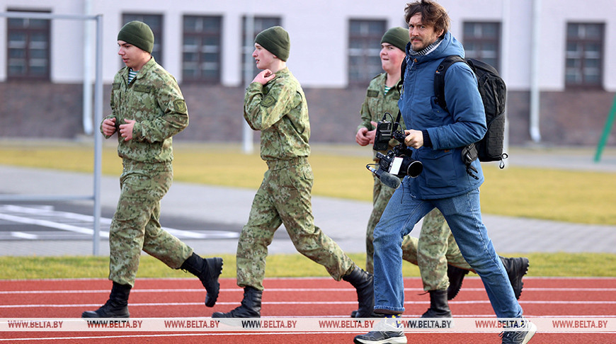 Journalists of the French TF1 TV channel are filming a story about patriotic education of young people in Belarus in Brest Fortress. They chose two locations in Brest Fortress: the patriotic center and the Memory Watch site.