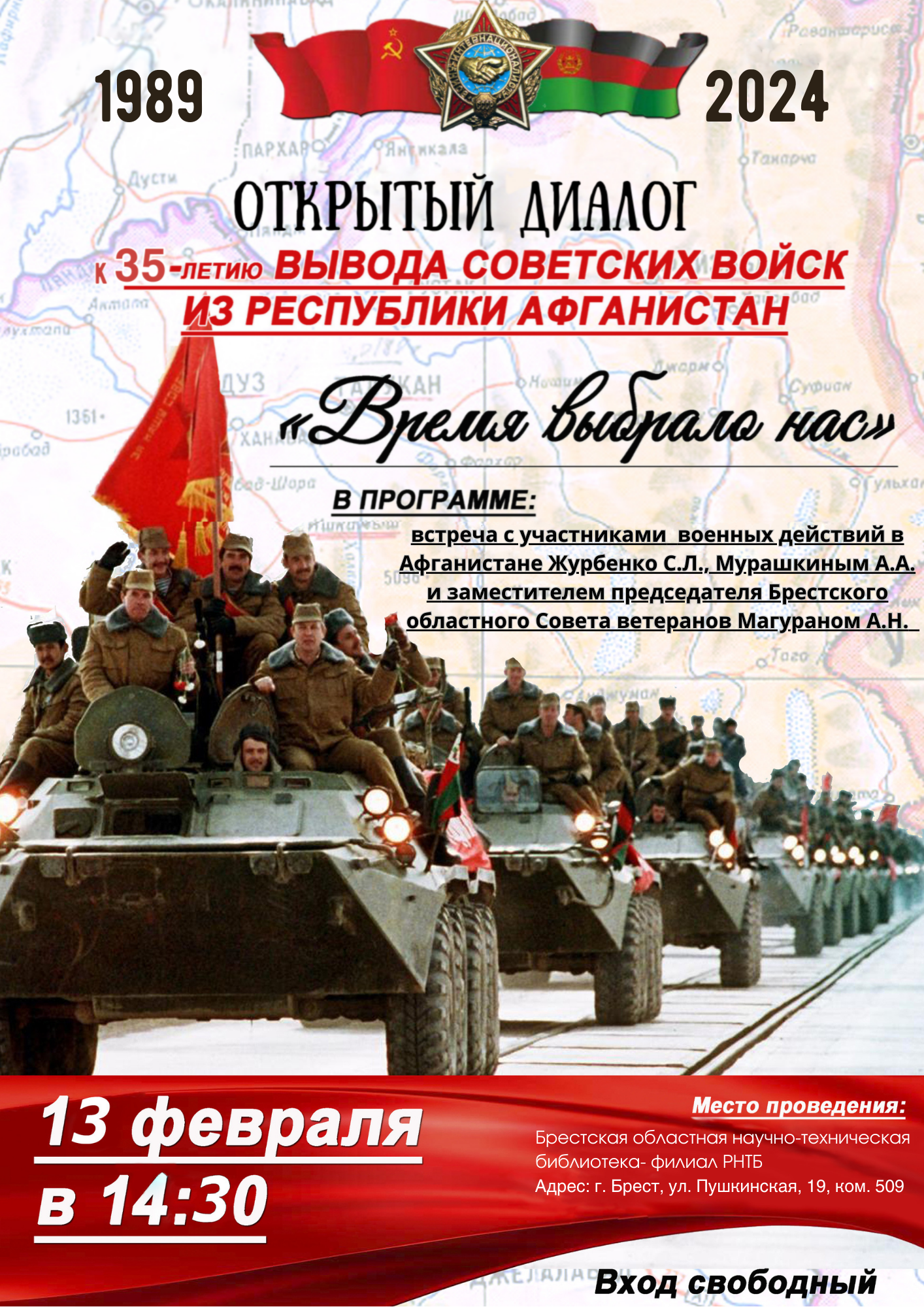 Афиша открытого диалога к 35-летию вывода Советских войск из Республики Афганистан