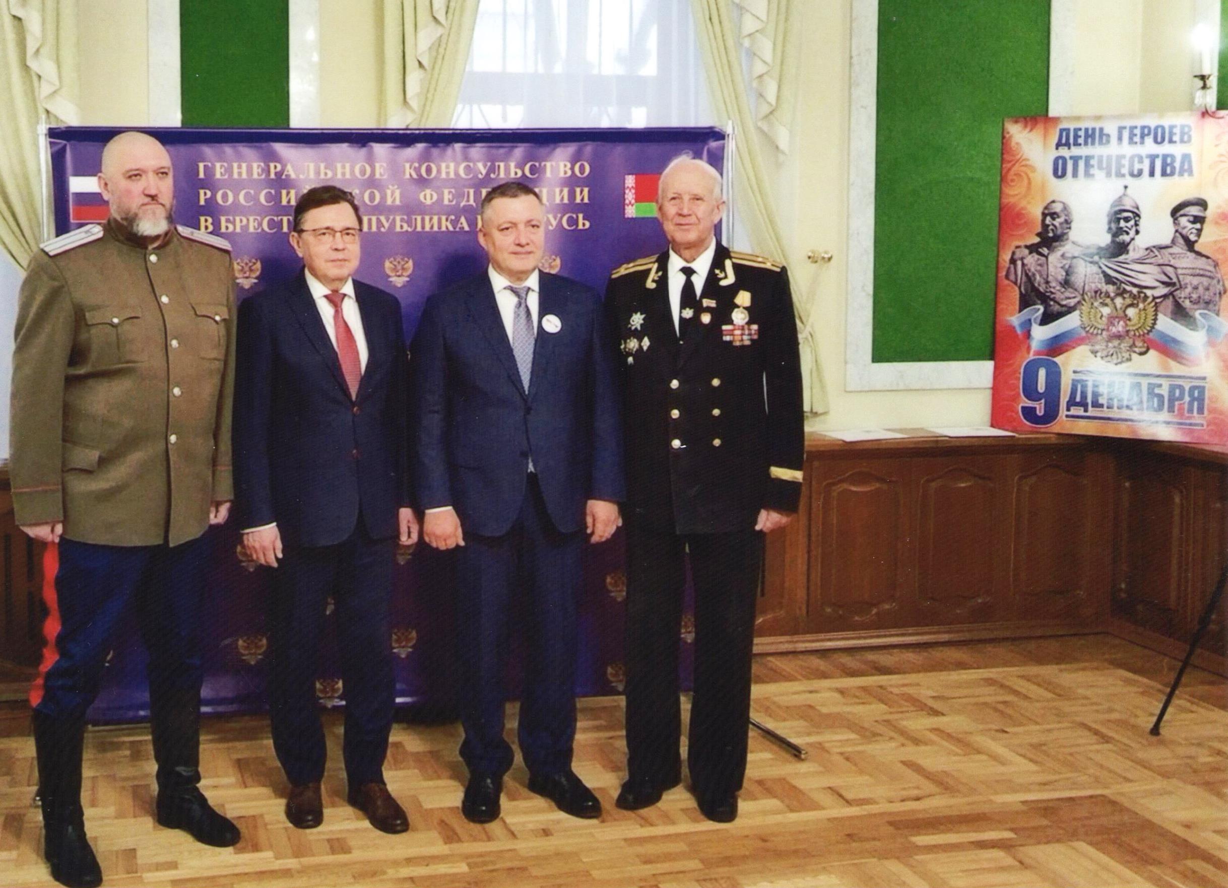 Генеральный консул РФ в Бресте Олег Юрьевич Мурашев на встречу с губернатором Иркутской области Игорем Ивановичем Кобзевым пригласил в Консульство председателя Пинского городского совета ветеранов, капитана 1-го ранга Егорова Н.И. и членов совета ветеранов Ососкова И.А., Омельковича С.А.