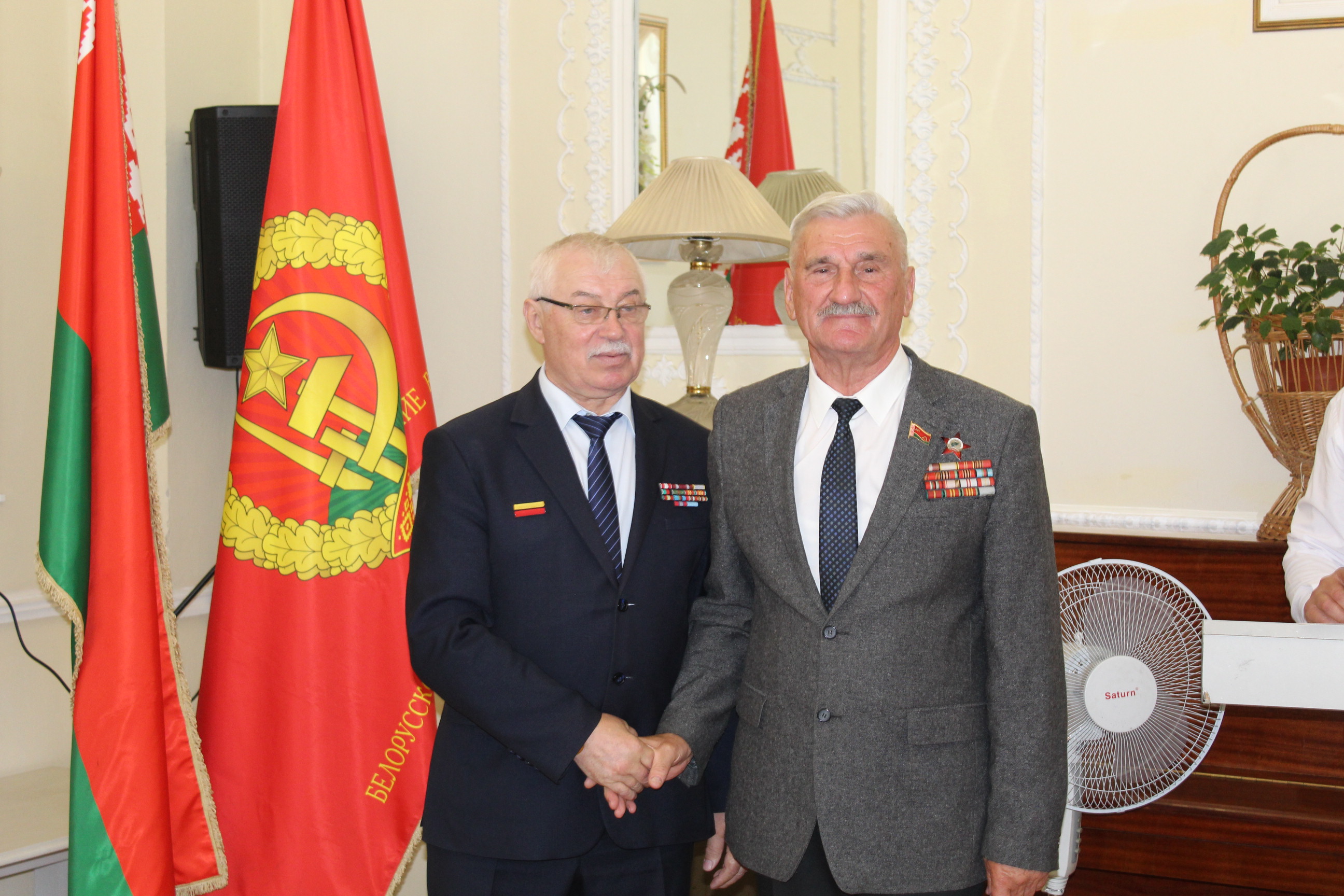 Председатель Республиканского совета Белорусского общественного объединения ветеранов Иван Аркадьевич Гордейчик вручает Знак БООВ "За заслуги" Председателю ветеранской организации Московского района Леонову Николаю Петровичу