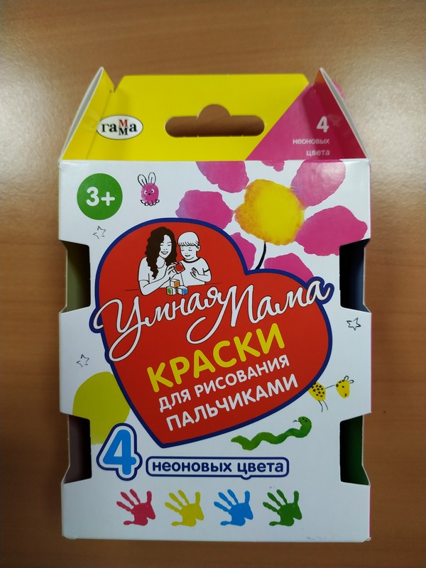 игрушка для детского творчества для детей старше 3 лет краски для рисования пальчиками серии «Умная мама» торговой марки «ГАММА», артикул 216010, 4 цвета, изготовитель ООО «ГАММА», Российская Федерация: