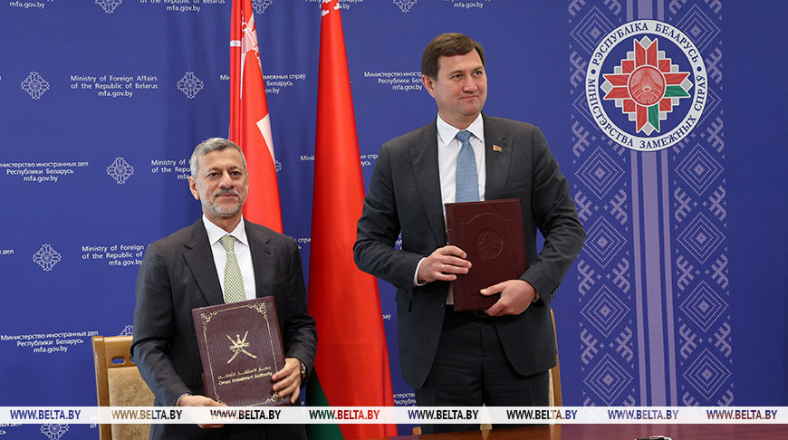 Беларусь и Оман 19 мая подписали межправительственное соглашение о создании совместного комитета по сотрудничеству и инвестициям, передает корреспондент БЕЛТА.