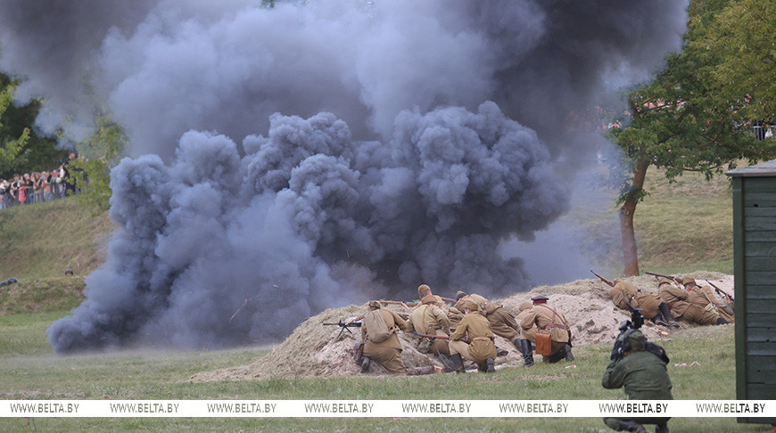 Более 600 военно-исторических реконструкторов из Беларуси, России, Латвии, Литвы, Эстонии и Польши воссоздали на рассвете 22 июня трагические и героические эпизоды обороны Брестской крепости, передает корреспондент БЕЛТА.