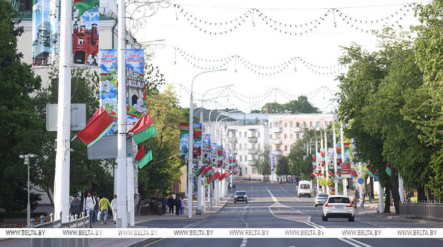 5 мая, Брест /Корр. БЕЛТА/. Брест готовится встретить День Победы. На улицах появились тематические стенды, фотозоны, клумбы и муралы.-0- Фото Виолетты Южаковой