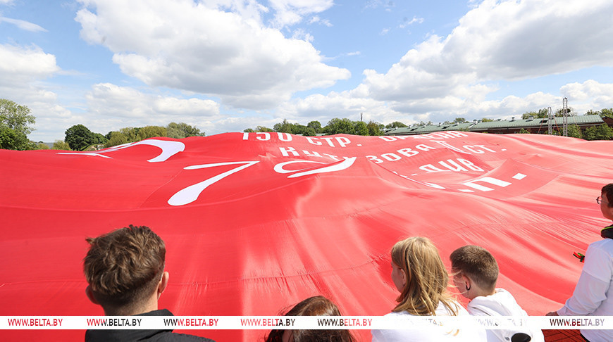 Сопровождает экспедицию самое большое в мире знамя Победы. Сделано оно из полиэфирного шелка и размером 35х65 м. Весит полотнище 350 кг, его перевозят на отдельном автомобиле. Путь от Бреста до Севастополя знамя преодолеет через 14 белорусских и российских городов как символ единства и непоколебимости воли двух братских народов. В Брестской крепости его развернули на площади Церемониалов под мелодию "День Победы".