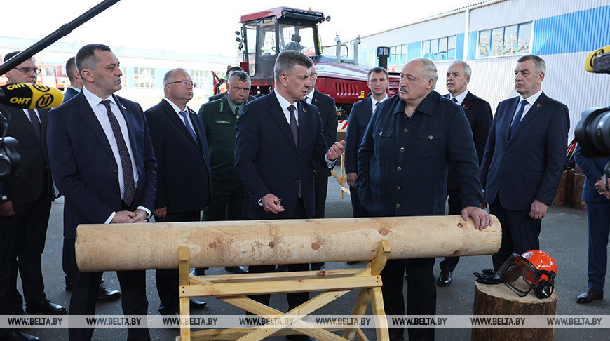 После доклада Президент ознакомился с выставкой отечественной лесозаготовительной техники таких предприятий, как МТЗ, "Гомсельмаш", АМКОДОР, МАЗ и других. Были на выставке и лесозаготовительные инструменты, в том числе топоры производства МТЗ. "Это топор хороший, емкий", - оценил инструмент глава государства.