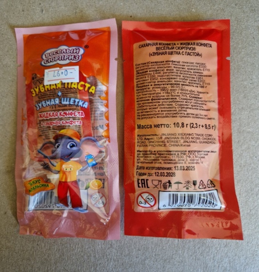 сахарная конфета+жидкая конфета «Зубная щётка с пастой» торгового