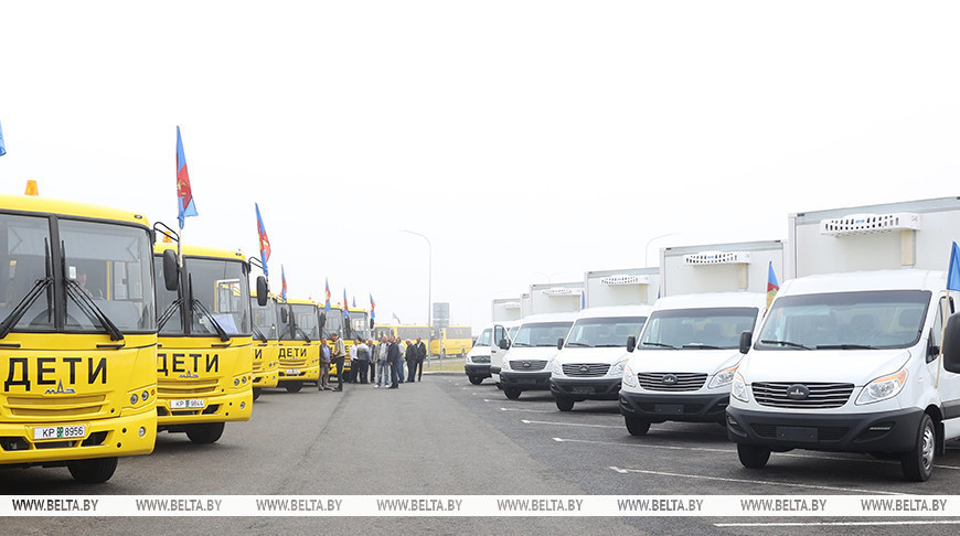 Технику владельцам передали на парковке у гигантской скульптуры зубра на границе Брестской и Минской областей. В школы Барановичского, Березовского, Брестского, Ганцевичского, Дрогичинского, Жабинковского, Ивацевичского, Каменецкого, Кобринского, Лунинецкого, Ляховичского, Пинского, Пружанского и Столинского районов отправились 25 автобусов МАЗ. Также в районные центры по обеспечению бюджетных организаций Брестской области поехали 17 автомобилей-рефрижераторов для перевозки скоропортящихся продуктов с изотермическим кузовом и холодильной установкой на базе шасси МАЗ.