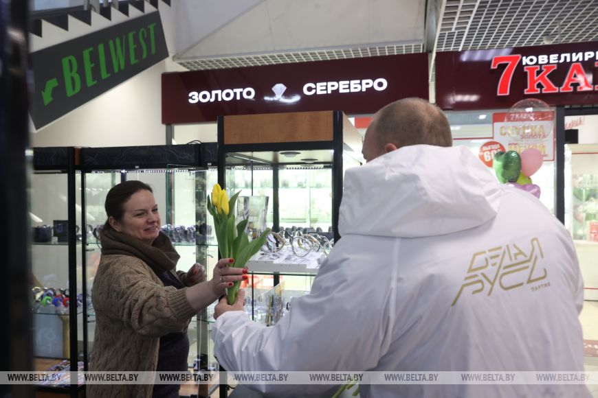 Импровизированный концерт устроили в центре Бреста. Мужчины областного отделения партии "Белая Русь" подарили женщинам цветы и позитивные эмоции. "Такая акция у нас уже стала традиционной. Партийцы по всей Брестской области пытаются подарить женщинам мгновения радости. 8 Марта - замечательный весенний праздник, а наши женщины - самые лучшие в мире. Видеть блеск их глаз, улыбки очень приятно мужчинам. Помимо цветов мы приготовили для женщин музыкальные весенние композиции в исполнении оркестра МВД воинской части 5526 Бреста", - рассказал заместитель председателя Брестского областного отделения партии "Белая Русь" Олег Коновалов. Чтобы порадовать женщин, партийцы купили около 1 тыс. тюльпанов.