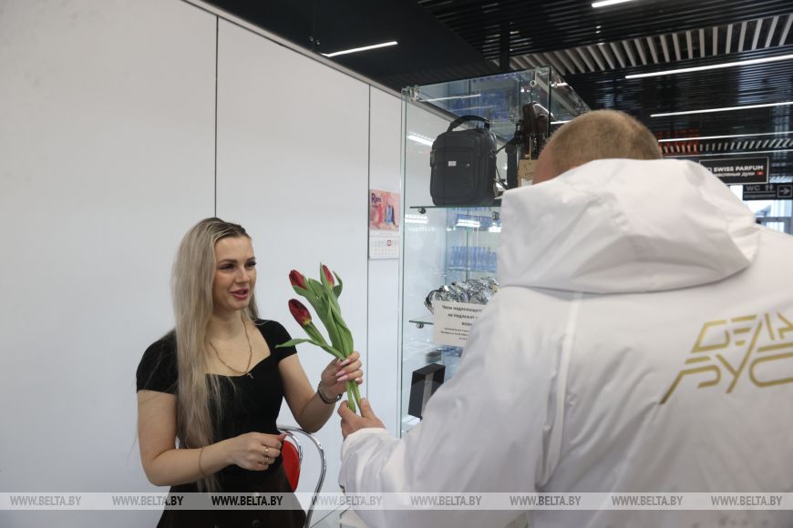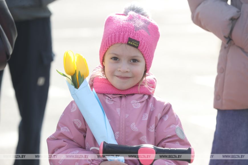 В другой части Бреста - у торгового центра "Варшавский" - плац-концерт устроили брестские пограничники. Для женщин они приобрели 1 тыс. тюльпанов. "Везде в нашей стране 8 Марта царит особая атмосфера. Брест - пограничный город, конечно, мы не могли остаться в стороне. Пограничники с самого утра поздравляют наших милых женщин: для них играет музыка, им дарят цветы. Видим радостные лица, улыбки, хорошее настроение. Это и было нашей целью", - обратила внимание официальный представитель Брестской пограничной группы Екатерина Котова. К слову, с самого утра брестские пограничники с цветами и под аккомпанемент оркестра поздравили в пункте пропуска "Брест" въезжающих в Беларусь женщин.