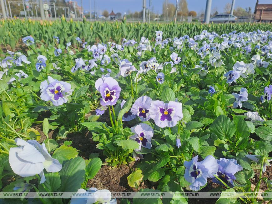 К майским праздникам будет много ярких красок. Брест порадуют цветением 100 тыс. виол, 200 тыс. тюльпанов различных сортов и оттенков.
