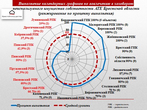 Планы по сокращению неиспользуемого имущества хозобществ с долей коммунальной собственности выполнены на 62,9%. Это 1-е место среди областей по количеству задействованных объектови 3-е по проценту вовлечения.