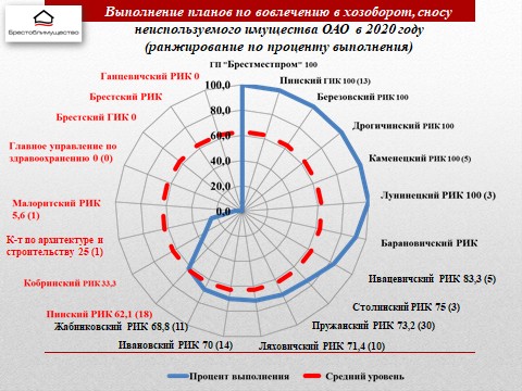 9 февраля 2021 года председателем Брестского облисполкома Шулейко Ю.В. ходе совещания с руководителями городских и районных исполнительных комитетов, органов управления облисполкома, а также других областных организаций рассмотрен вопрос «О состоянии работы по вовлечению в хозяйственный оборот неиспользуемого государственного имущества».